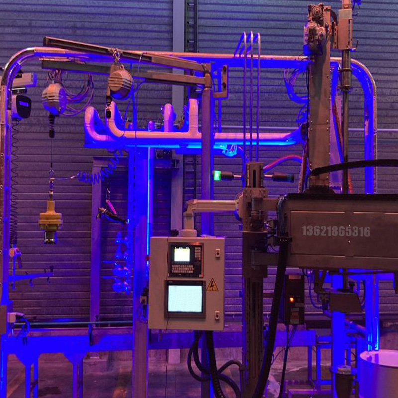 一個12英寸的人機界面屏幕,沖洗系統(tǒng)由一個漏斗組成,噴嘴放置在漏斗上。通過絞擰程序,它下降到一個已知的位置并打開。當設(shè)定的排水時間到期時,程序結(jié)束,加蓋和開蓋工具,接地系統(tǒng),為了幫助操作員裝卸貨盤,對電氣柜進行了改造,使其可以移動。
