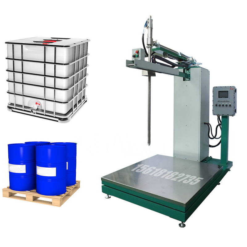 IBC噸桶灌裝機■ 產品適用:適用于易產生泡沫、易爆的液體物料之灌裝,如:清洗劑、四氫呋喃、正戊烷、醋酸甲酯、易爆溶劑等?;緟担骸?使用電源:AC220V 50/60HZ 0.1KW 使用氣源:0.5~0.7 Mpa■ 灌 裝 量:100~1200kg 分度值:0.1kg■ 灌裝能力:200L 40~48桶/H、IBC噸桶 6~8桶/H■ 灌裝精度:≤ 0.1 % F.S.■ 灌槍