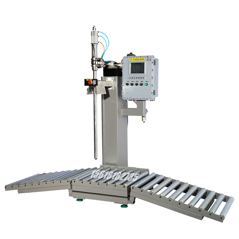 GZM-300L-Ex 液下式200L灌裝機采用長管型灌槍,從包裝桶底部采液下式傘狀灌裝,可以抑制泡沫產生,防止物料溢出;也可抑制灌裝過程中產生靜電;搭配充氮裝置,可極大的消除易爆液體灌裝時所產生之危害。