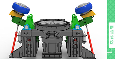 3、運行可靠,檢修方便。磨輥檢修時,可翻出機體外,對四個磨輥的大型機,當一個或對稱位置的兩個磨輥檢修時,利用另兩個對稱的磨輥運行,可達正常產能的60~70%,不影響或少影響整條生產線;